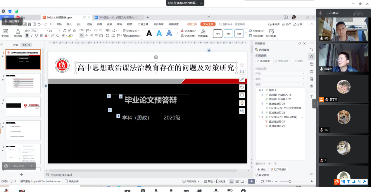 通过腾讯会议分别开展了2022届马克思主义理论类、哲学类学术型研究生和学科教学(思政)专业学位研究生的学位论文线上预答辩工作。会议分上下午两场,共12个小组,预答辩学生总人数为79人。