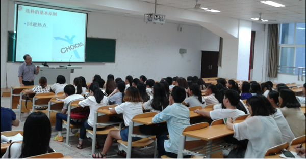 这次招生宣传工作,主要以考研经验交流的形式进行。在招生宣讲会上,刘寿堂老师首先以自己当年的考研经历,以及作为新东方资深考研培训师多年的培训经验,向同学们解答了是否准备考研、为什么考研、考研选择什么学校,以及怎样备考研究生等问题,紧接着着力介绍了直播
