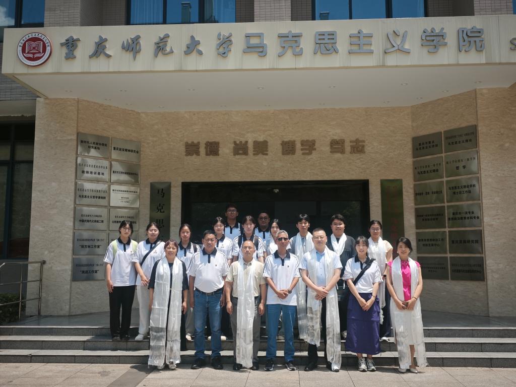 本次交流座谈会在友好热烈的氛围中圆满结束,在合影留念环节,藏大马院的师生们深情地将象征纯洁、尊敬与吉祥的洁白哈达,献给直播
