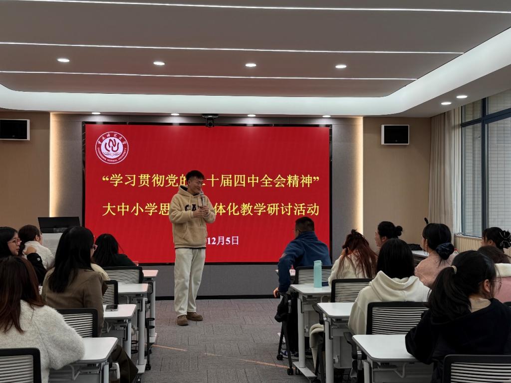本次研讨活动内容充实、视角多元、交流深入,不仅深化了与会者对党的二十届四中全会精神的理解,更在大中小思政课一体化教学创新路径、教学方法改革、数字技术应用等方面凝聚了共识、开拓了思路。大家纷纷表示,将把研讨成果转化为教学实践的具体行动,共同推动大中小学思政课建设内涵式发展,为培养担当民族复兴大任的时代新人贡献更大力量。