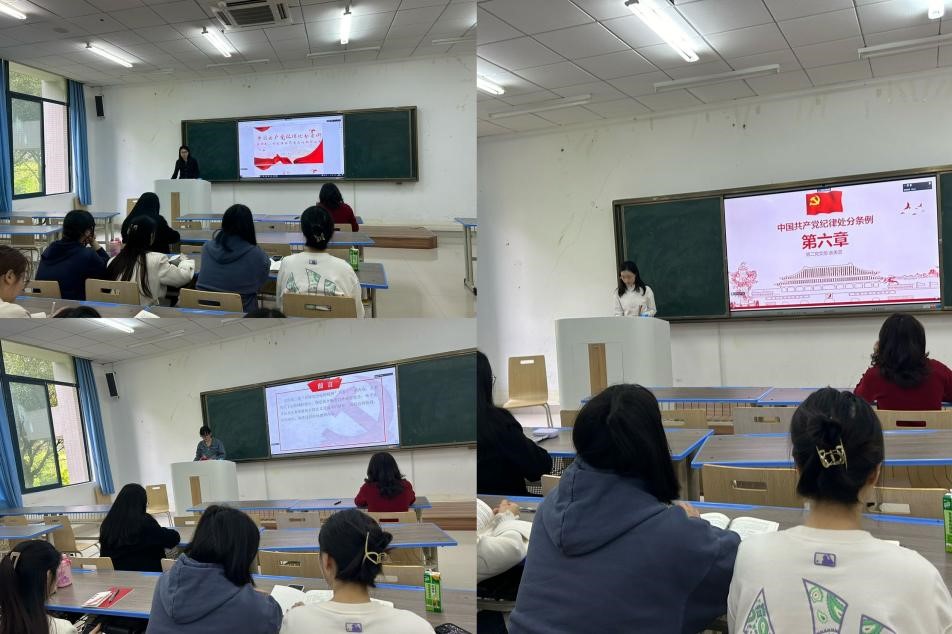 首先,徐琴同志简要介绍了《中国共产党纪律处分条例》的核心要义、精神实质和实践要求。随后,三位党员同志依次进行了交流分享,分别围绕具体条例、案例分析、启示警醒展开讲解。最后,徐琴同志进行总结点评。她指出,全体党员同志要深入贯彻习近平总书记关于党的自我革命的重要论述,自觉把纪律和规矩挺在前面,筑牢思想防线和行为底线,深刻认识党中央正风肃纪反腐的坚定决心,牢固树立纪律和规矩意识。
