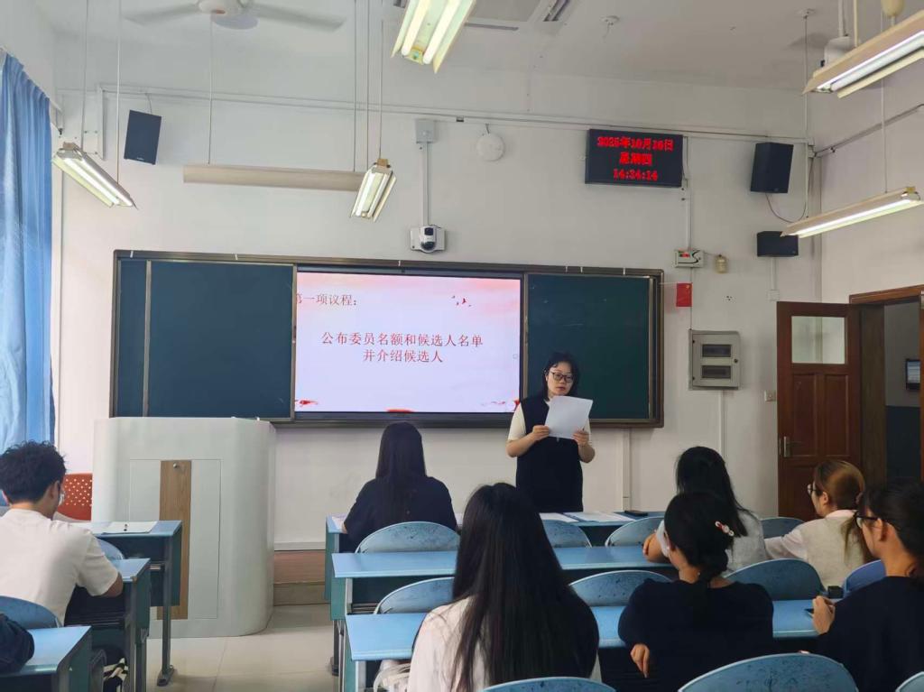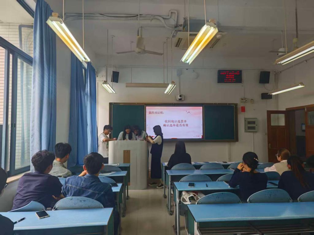 大会最终选举代悦、邓静雯、陈碧、许桂灵4名同志为新一届支部委员会委员。大会后,新当选的支部委员在弘德楼11203教室召开直播