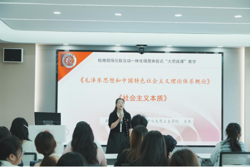 及四川省广安市邓小平故里协同打造的《毛泽东思想与中国特色社会主义理论体系概论》之《社会主义本质》专题教学正式开讲。来自三所高校的2024级3800余名学子通过线上线下融合的方式,在同一时间、不同空间,共同走进邓小平同志故里,在场景化、体验式的教学中深刻感悟社会主义本质论断的理论光辉与实践伟力。