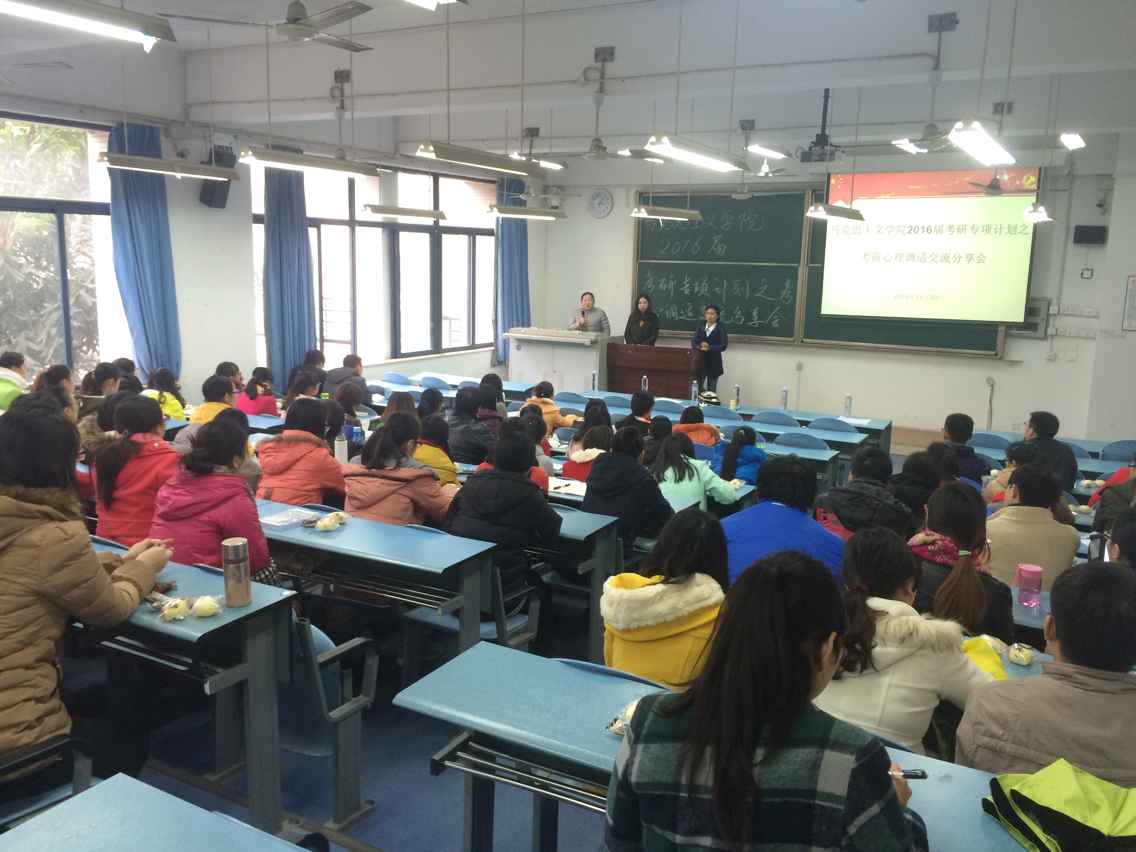 本次交流分享会,为考生提供了科学可行的考前心理调适方法以及考研冲刺阶段的复习方法,相信2012级考研学子能够在即将到来的考研初试中取得优异成绩!