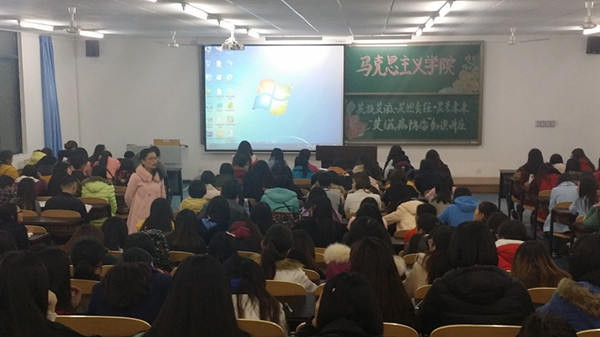 于2015年12月6日在特教楼2410教室先后开展了两场“艾滋病防治”知识讲座。2013级王爽担任本场讲座主讲人,2013、2014级全体同学先后出席讲座。