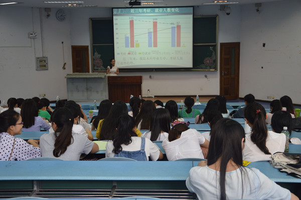 本科生毕业后的就业情况进行分析,并对各就业单位进行简介。张老师还对2013级同学们的就业简历提出了一系列修改建议并倡导同学们树立正确的就业观念。最后,张老师提醒同学们不管是选择就业还是考研,都应坚定自己的信念,不忘初心不忘始终。下午16时,讲座圆满结束。